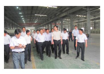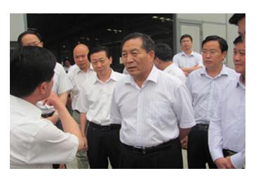 (圖一)2011年11月8日,河南省省委書記盧展工(右一)在商丘市市委書記陶明倫(右二)等領(lǐng)導(dǎo)的陪同下視察河南松川汽車公司并與公司總經(jīng)理劉飛(左一)親切交談;